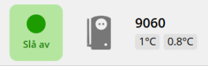 - Genom att klicka på symbolen för huvudenheten växlar du mellan att slå på och av 230V-utgången (alternativt reläet för Ontech GSM 9025/9065). Under tiden kontrollpanelen kontaktar enheten visas en vertikal grön balk i vänstra delen av ikonen. När 230V-utgången (alternativt reläet för 9025/9065) är aktiverad visas detta med att ikonens bakgrund färgas grön.